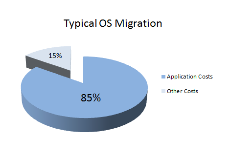 Below is the approximate breakdown of application migration costs versus the other costs for a typical operating system migration project.